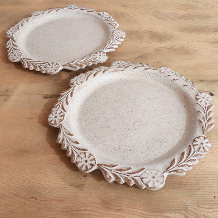 料理を盛り付けると、まるで花輪の中に彩りが広がるように見え、食卓を華やかに演出します。