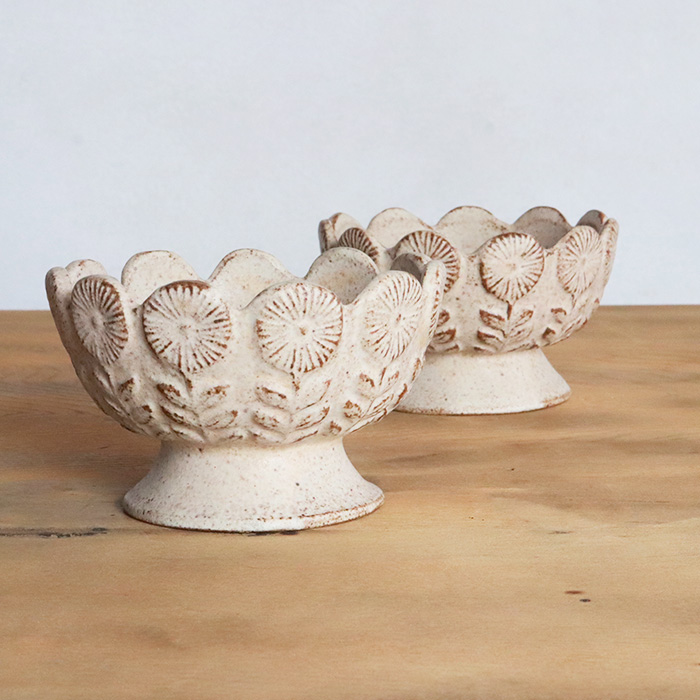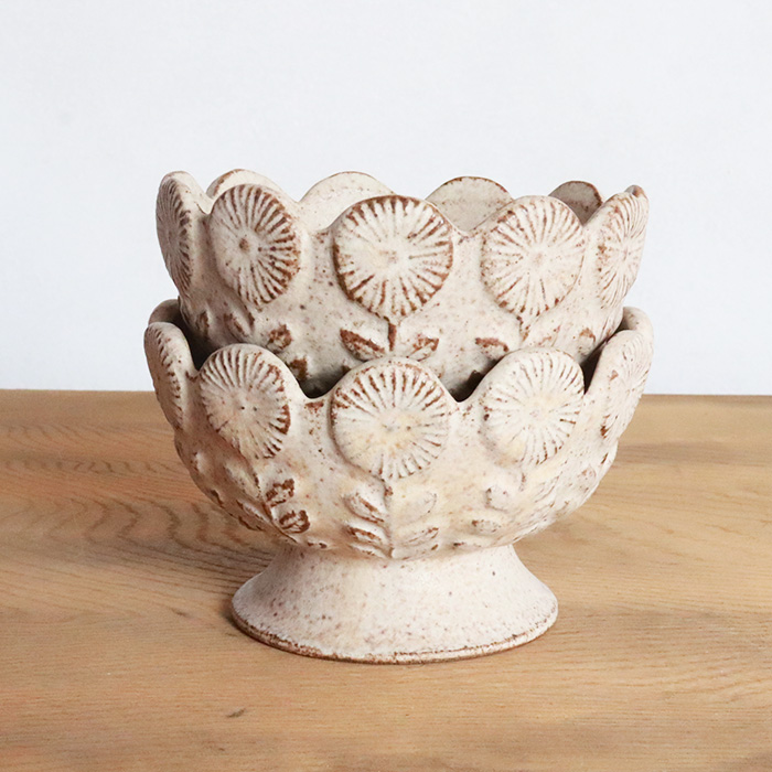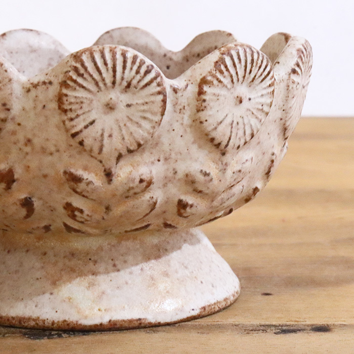 口径の縁取りがお花のレリーフに沿ってナミナミしてます。