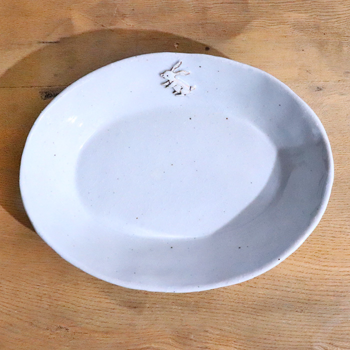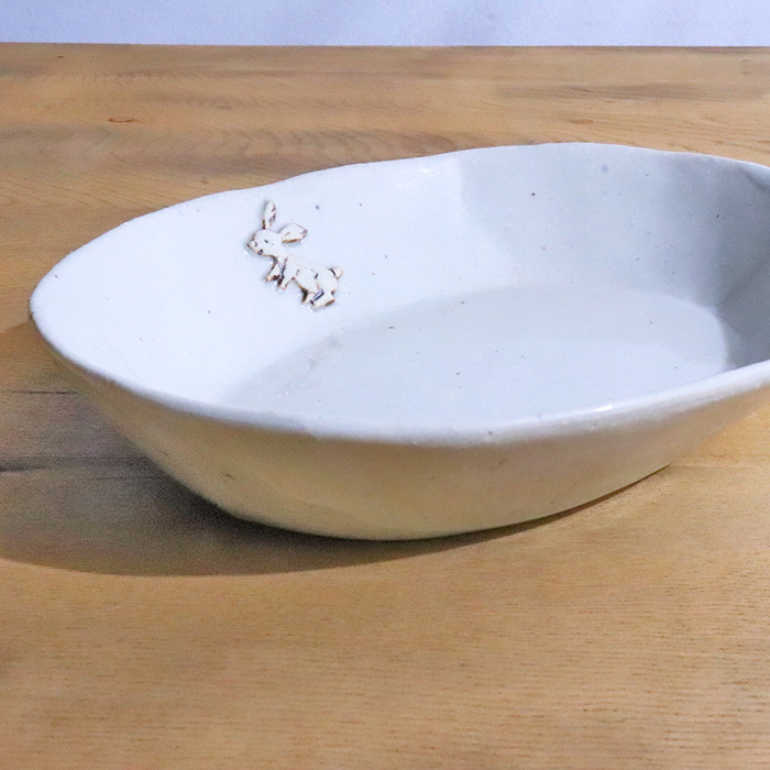 食卓を楽しくしてくれる動物のモチーフが付いた楕円皿。