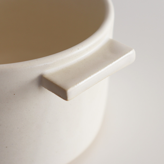 手作りならではの釉薬のゆらぎや垂れが、唯一無二の表情をつくり出す一点モノの小鍋です。