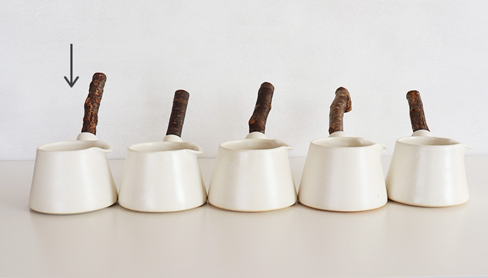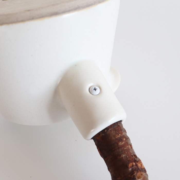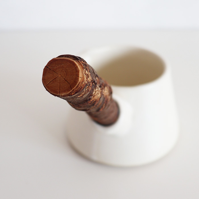持ち手には天然オイルを施した桜の枝をそのまま活かしたハンドルを採用、キッチンに置くだけでも絵になる存在感です。