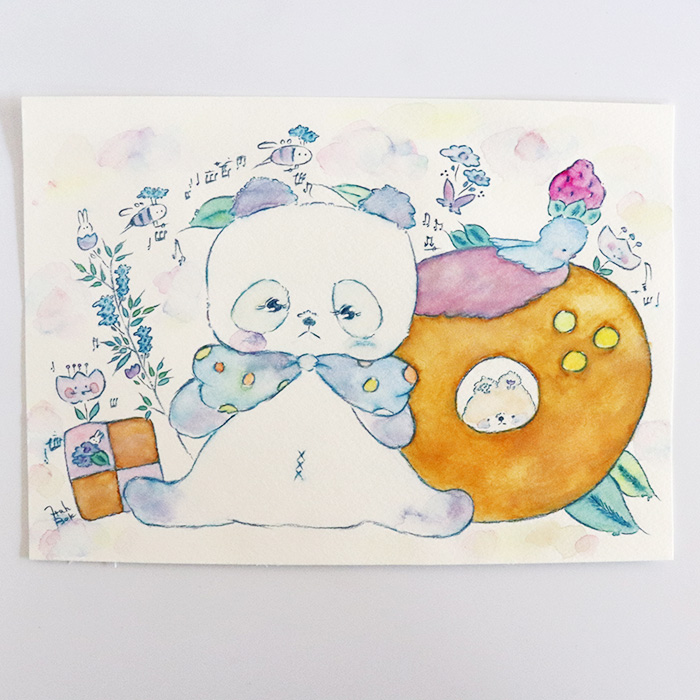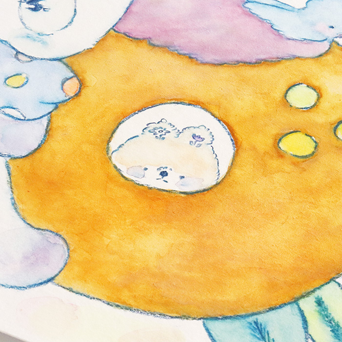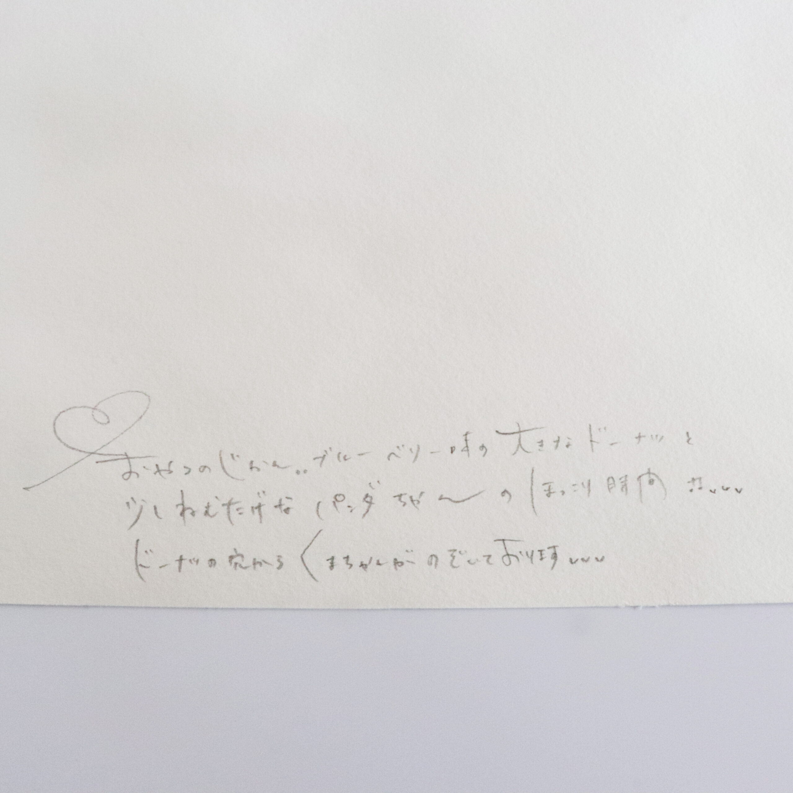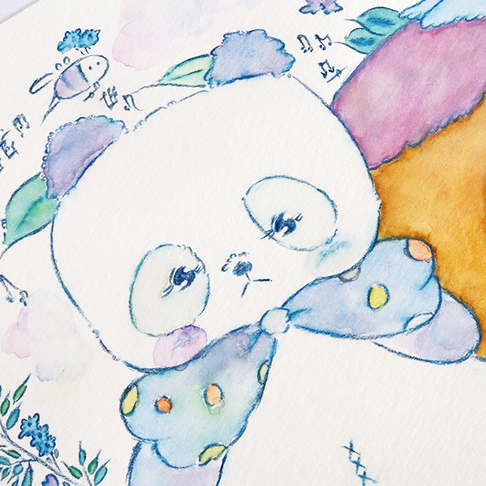 用紙は厚みのあるコットン紙、表面にはほんのりとポコポコした凹凸(テクスチャー)があり、作品の可愛さをさらに引き立てています。