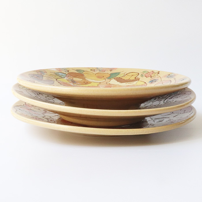 水彩画のようなやさしい色合いと手仕事ならではのあたたかさが、食卓にふんわりと彩りを添えてくれます。