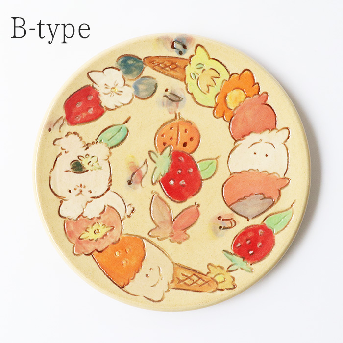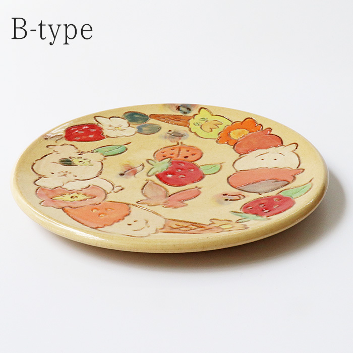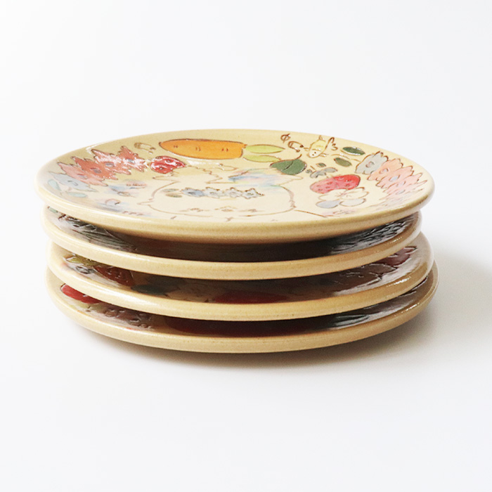 おやつ皿や取り皿として使いやすいサイズで、手描きならではの優しいタッチを楽しんでいただける作品です。