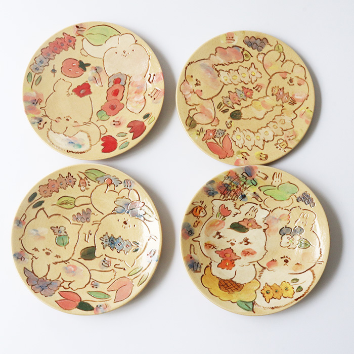 絵皿作家のHUH BOKさんが描く絵柄は暖かく、楽しい気持ちさせてくれます。